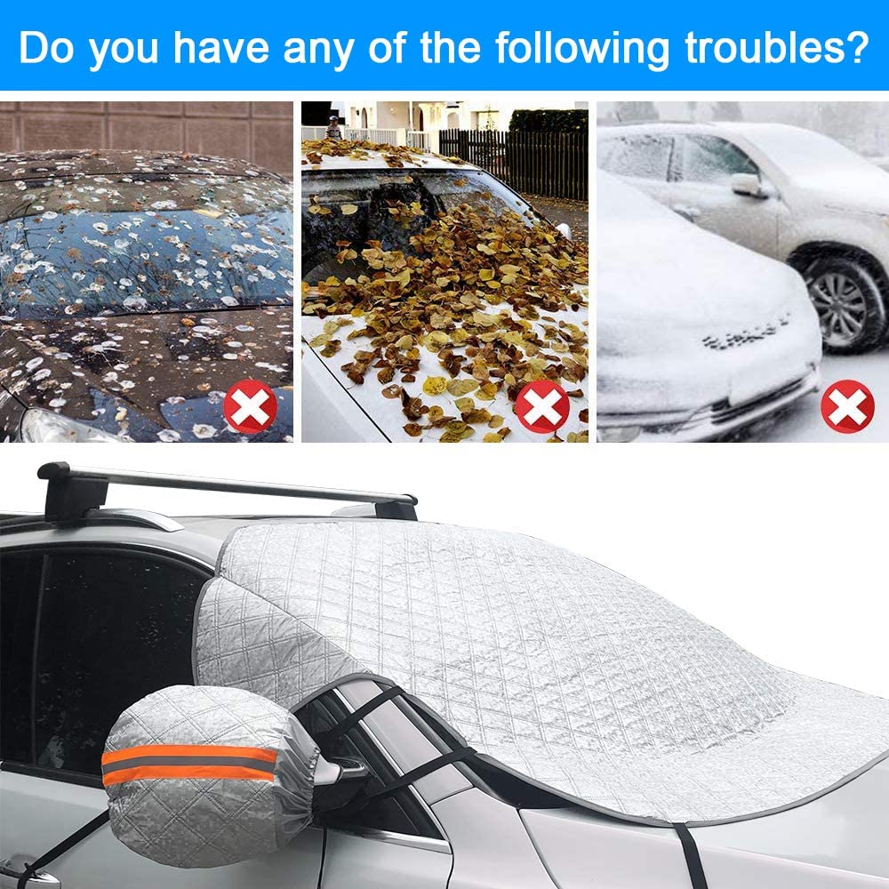 Multifunctional : It is applicable in all seasons to avoid dust, fog, water and dead leaves, which reduces the time of vehicle cleaning. Avoid sun exposure and overheating in the car, and prevent snow and frost in winter, saving you from getting up early and removing snow or frost.
