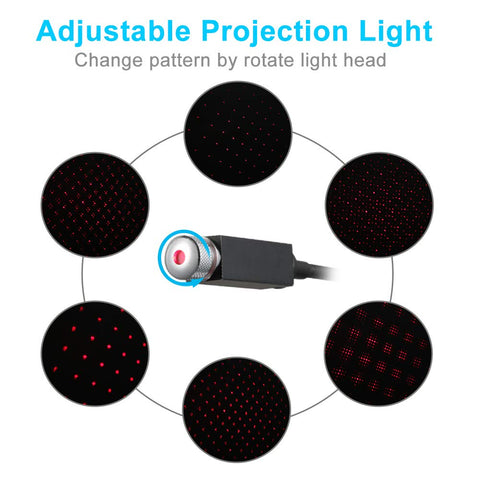 It Can projector super bright & cool starry sky on the roof of the car. Multi-Pattern Change : Through rotating the head of star projector, you can enjoy many projection patterns.Bending Freely : Adjust any project direction of interior car lights by bending freely design.Easy To Use : This car decorations night light include USB plug, so it can be powered by powered bank, car interior USB port, computer and plug with USB etcBeautiful and Romantic : As a mood lighting, build a romantic starry sky atmosphere in your car, bedroom or party