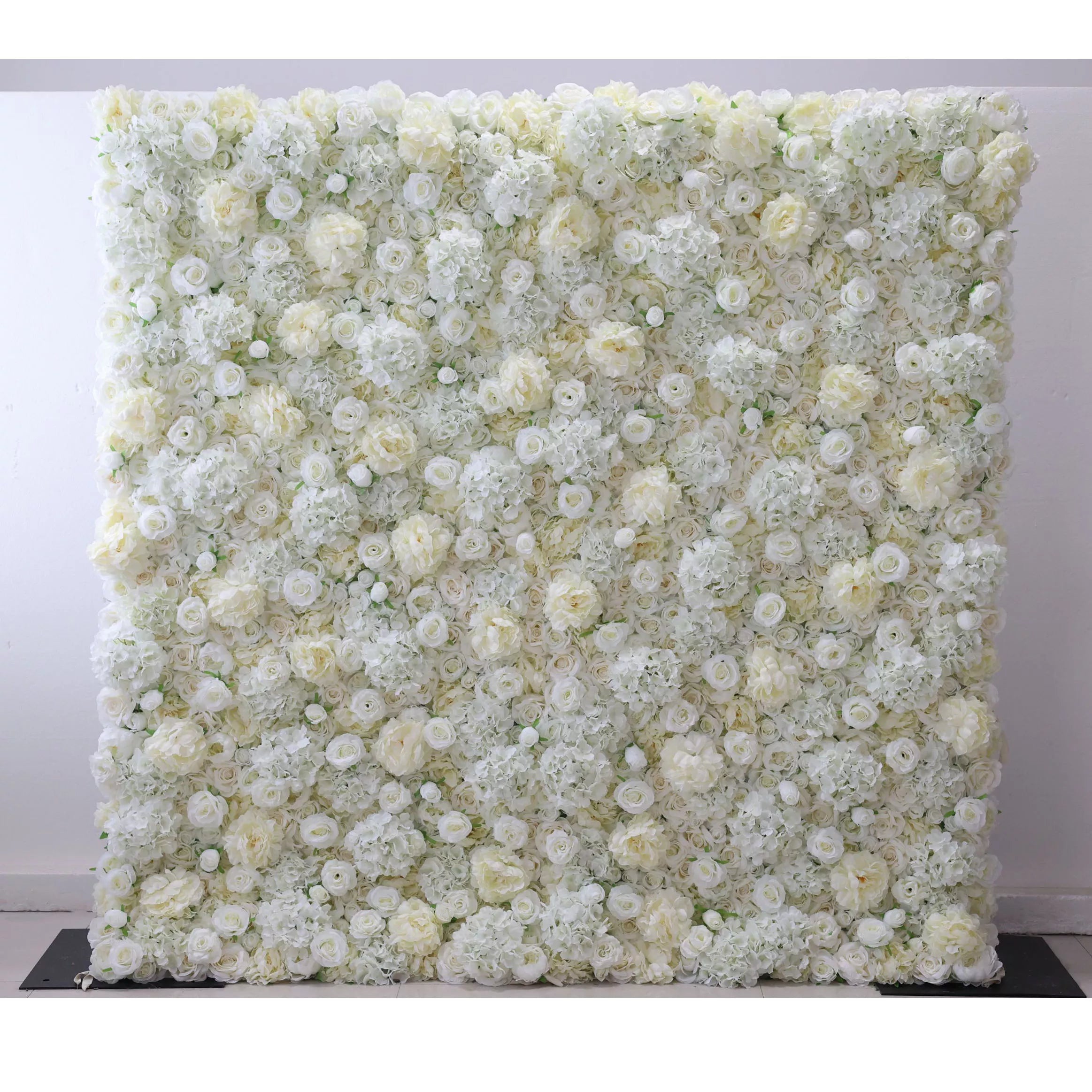 Roll Up Fabric Artificial Champagne Ivory, White and Grey Olive Light Yellow Green Flower Wall Wedding Backdrop, Floral Party Decor, Event Photography-VF-053-2