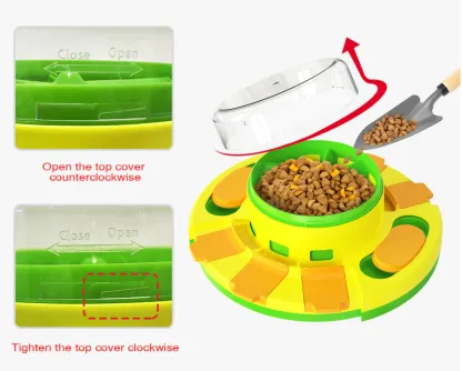 [Convenient for adding dog food] Twist the transparent granary cover counterclockwise• and open it up, directly add dog kibbles or treats to the granary. put the transparent cover back onto the granary and turn clockwise to tighten it.